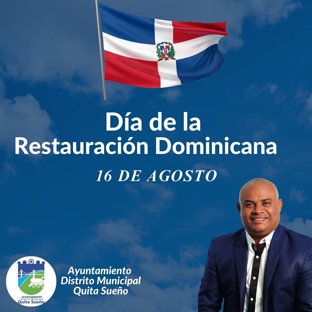 Hoy celebramos con orgullo el 𝟏𝟔𝟐 𝐚𝐧𝐢𝐯𝐞𝐫𝐬𝐚𝐫𝐢𝐨 𝐝𝐞 𝐥𝐚 𝐑𝐞𝐬𝐭𝐚𝐮𝐫𝐚𝐜𝐢ó𝐧 𝐝𝐞 𝐥𝐚 𝐑𝐞𝐩ú𝐛𝐥𝐢𝐜𝐚 𝐃𝐨𝐦𝐢𝐧𝐢𝐜𝐚𝐧𝐚, un hito de nuestra historia que nos recuerda la valentía y el sacrificio de nuestros héroes. Desde el Ayuntamiento del Distrito Municipal de Quita Sueño, bajo la dirección de Nelson Brito (Nelson Tanque), renovamos nuestro compromiso con los valores patrios y seguimos trabajando por el bienestar de nuestra comunidad.