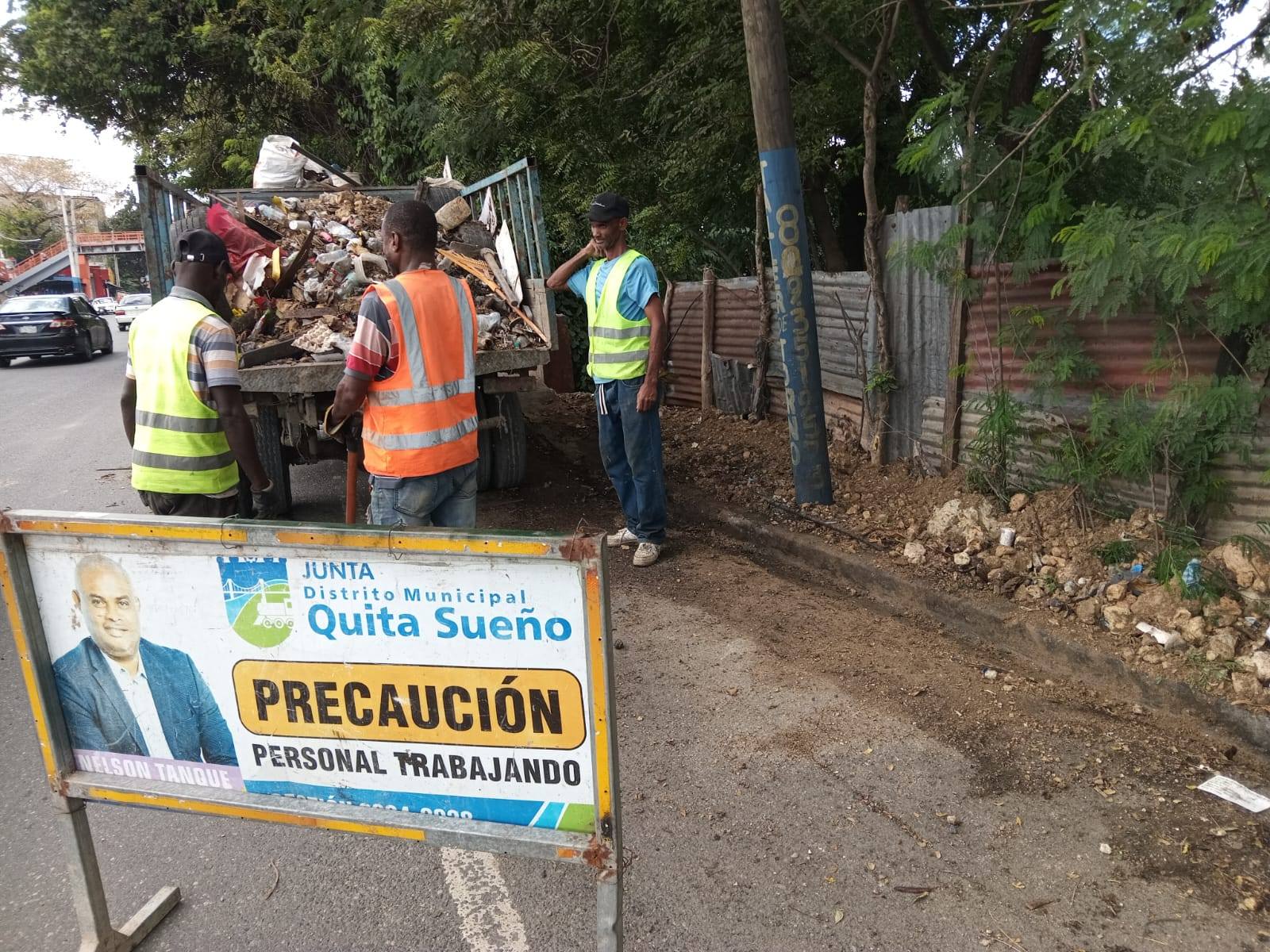 El director del Distrito Municipal de Quita Sueño, Nelson Tanque, encabezó un operativo de limpieza en la carretera Quita Sueño–Manoguayabo, la carretera Francisco del Rosario Sánchez, el puente peatonal y Los Chinos.