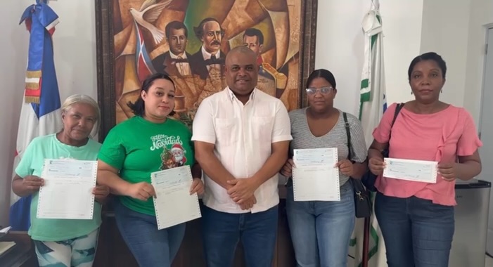 El director de la Junta Municipal de Quita Sueño, municipio Bajos de Haina, provincia San Cristóbal, Nelson Brito (Nelson Tanque), realizó la entrega de cheques a las cuatro familias que sus casas resultaron afectadas por un derrumbe en el sector El Túnel de ese distrito.